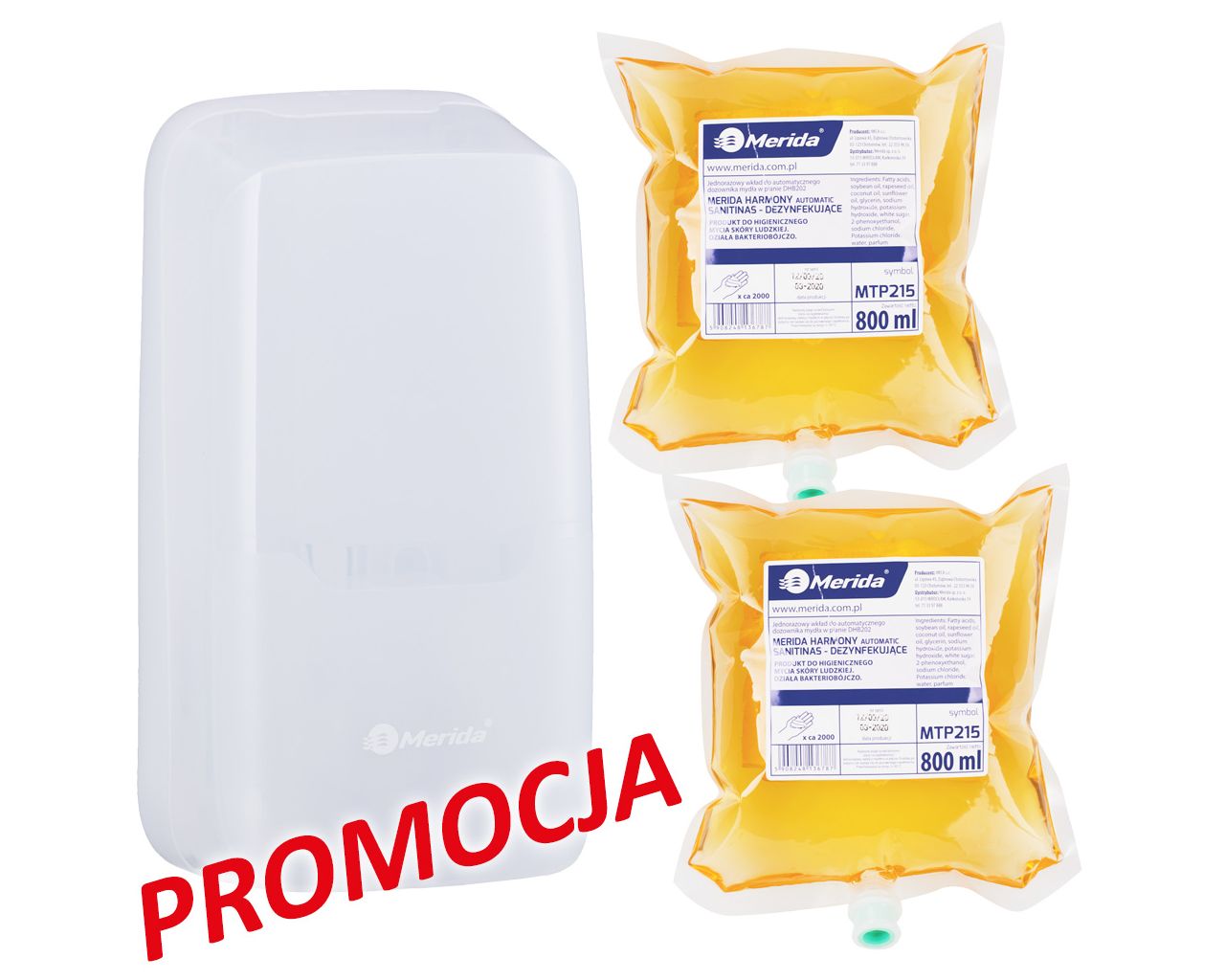 Automatyczny bezdotykowy dozownik mydła w pianie MERIDA HARMONY i 2 wkłady z mydłem MERIDA HARMONY AUTOMATIC SANITINAS – DEZYNFEKUJĄCE