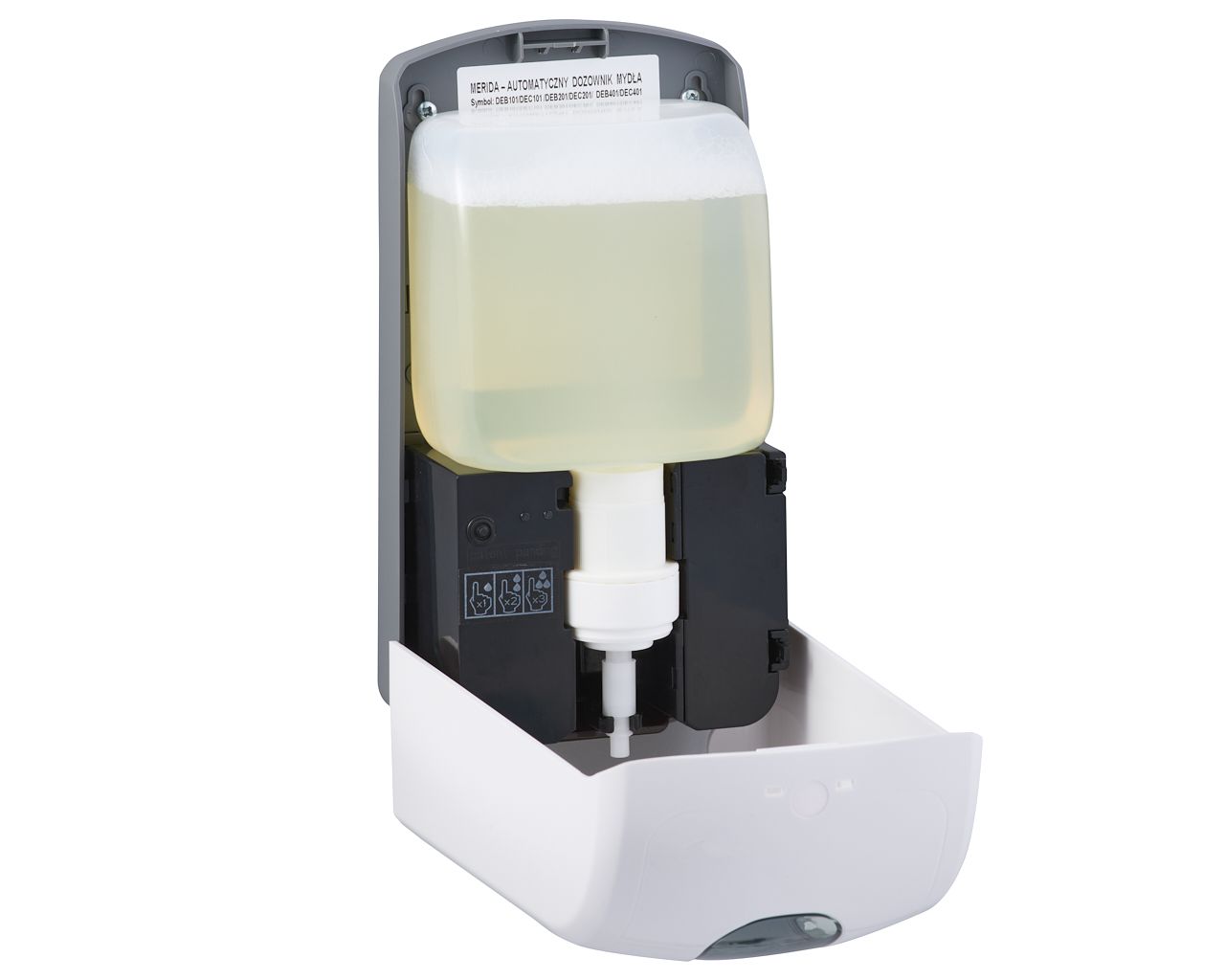 Bezdotykowy automatyczny dozownik mydła w pianie MERIDA ONEna jednorazowe wkłady 1000 g, tworzywo ABSbiały