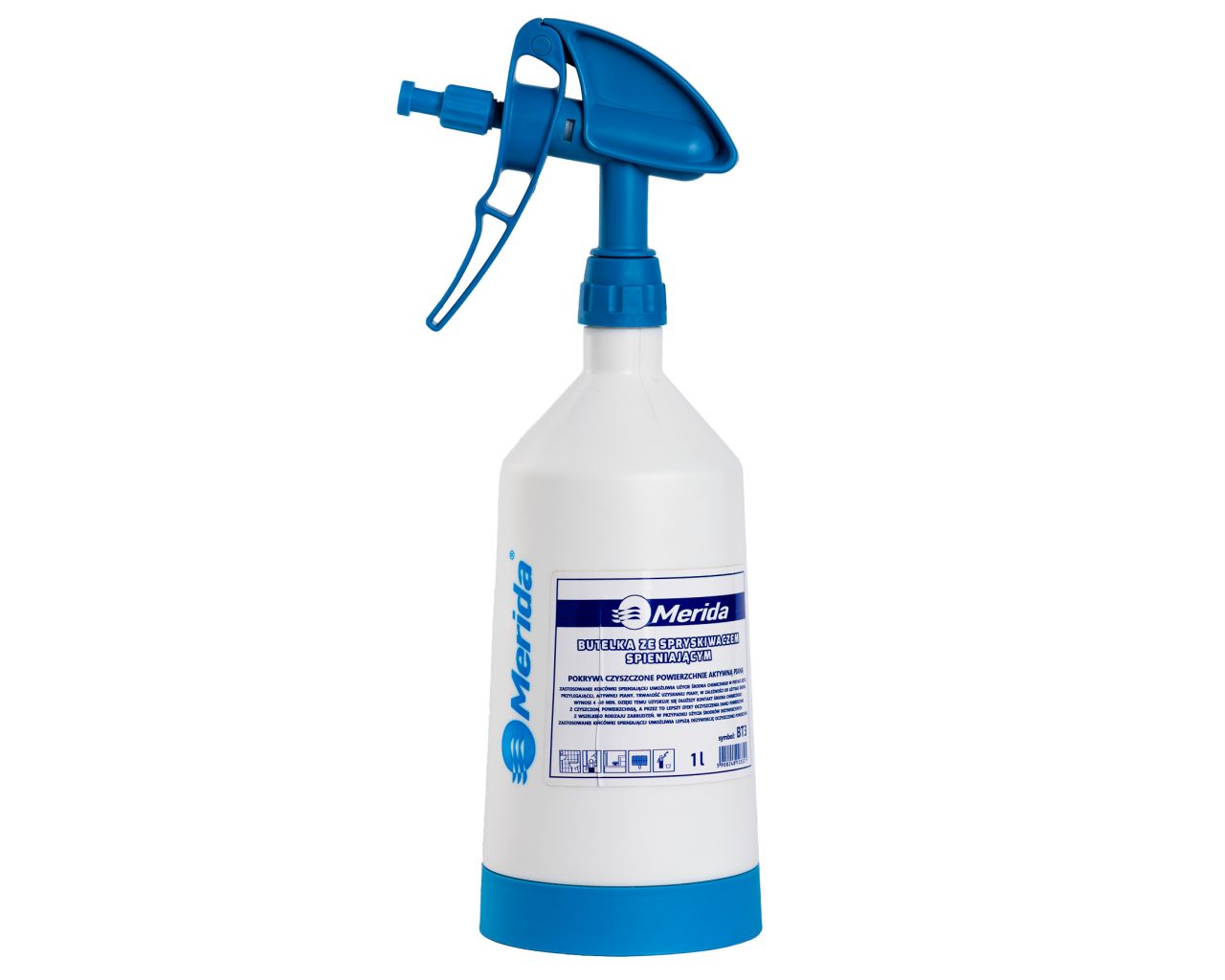 Butelka ze spryskiwaczem spieniającym dwustronnymniebieska, wyskalowanapojemność 1 l