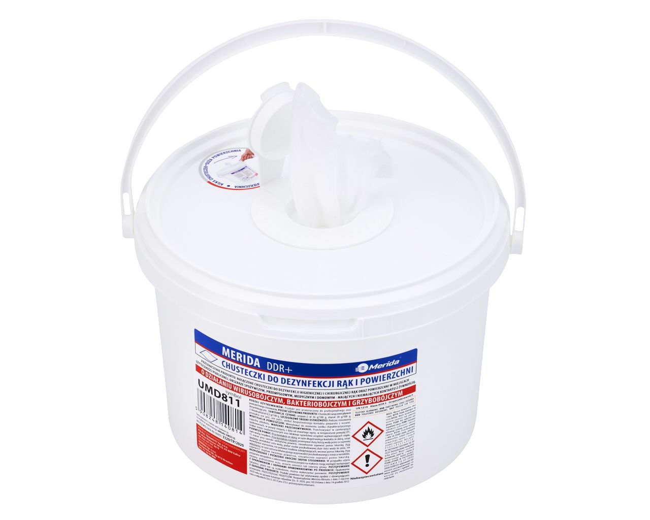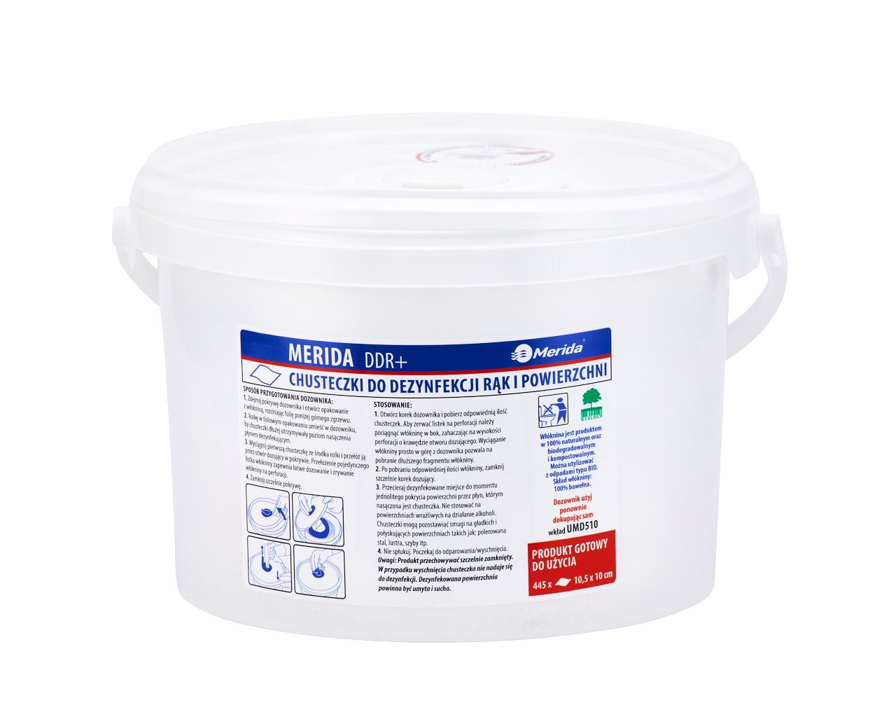 Chusteczki nasączone do chirurgicznej i higienicznej dezynfekcji rąk i powierzchni MERIDA POLANA DDR+wiadro 3 l, rolka 44,5 m445 listków