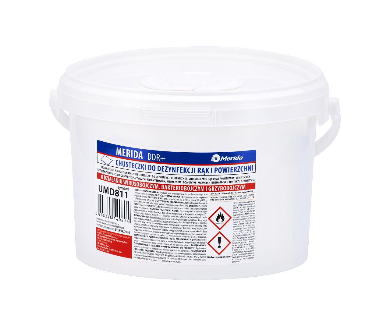 – chusteczki Merida POLANA DDR+ to produkt zawierający mieszaninę trzech substancji czynnych (etanol, izopropanol i fenoksyetanol), skutecznych w walce z grzybami, bakteriami i wirusami (pozwolenie na obrót produktem biobójczym nr 3329/TP/2020)
