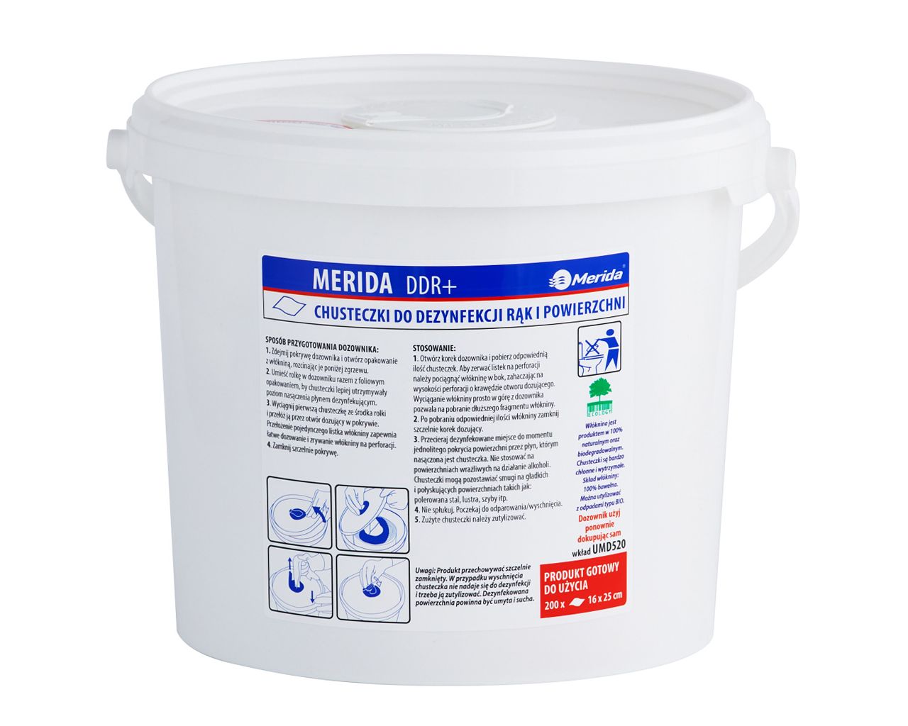 – chusteczki nasączone do dezynfekcji rąk i powierzchni, MERIDA DDR+