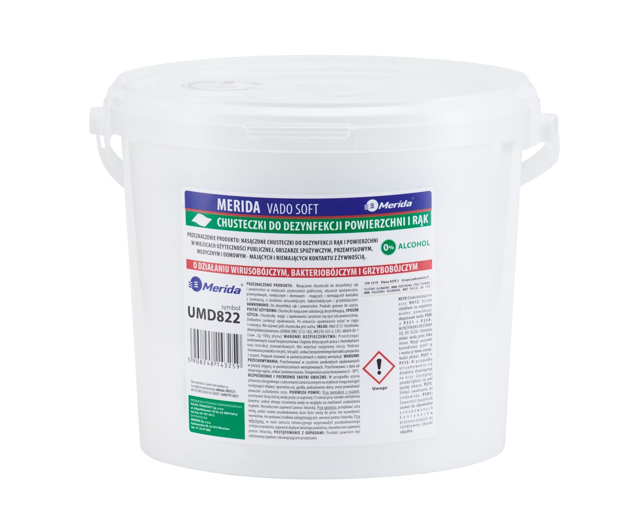 Chusteczki nasączone do dezynfekcji rąk i powierzchni MERIDA VADO SOFTbezalkoholowe, wiadro 6 l, rolka 65 m260 listków