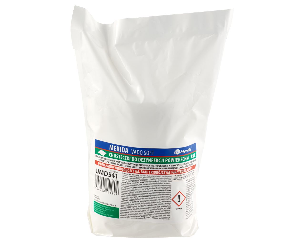 Chusteczki nasączone do dezynfekcji rąk i powierzchni MERIDA VADO SOFTbezalkoholowe, wkład uzupełniający do tuby, 15 m100 listków