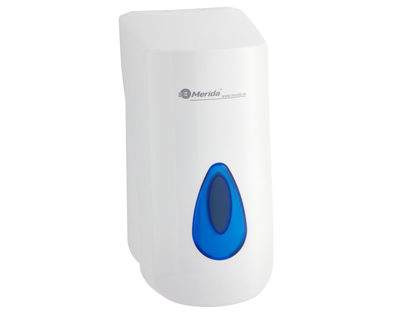 Dozownik mydła w płynie lub kremu do rąk MERIDA TOP MAXI na jednorazowe wkłady 880 mltworzywo ABS, białyokienko niebieskie