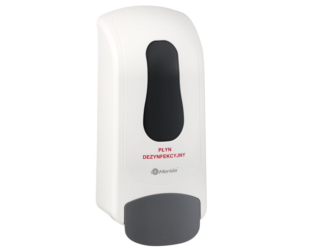 Dozownik płynu dezynfekcyjnego MERIDA ONEna jednorazowe wkłady 700 ml z płynem dezynfekcyjnym MERIDA POLANA DDR+, tworzywo ABSbiały