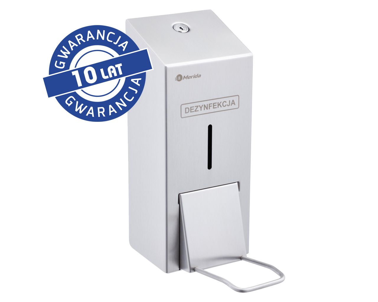 Dozownik płynu dezynfekcyjnego w sprayu z przyciskiem łokciowym MERIDA STELLApojemność zbiornika 800 mlstal matowa