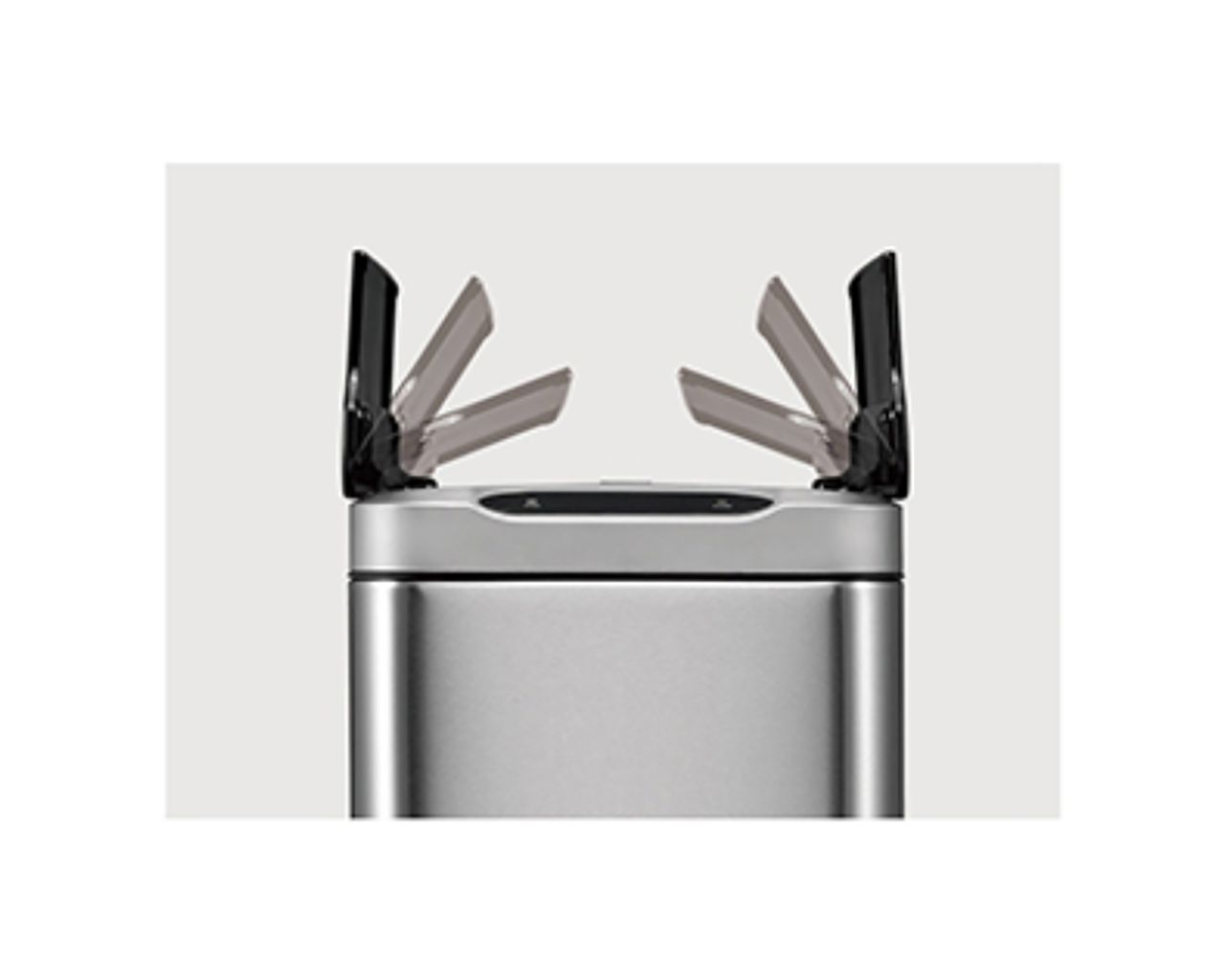 – dwustronna klapa kosza otwierana bezdotykowo, czujnikiem zbliżeniowym, zamykana automatycznie, czas do zamknięcia pokazany na wskaźniku elektronicznym