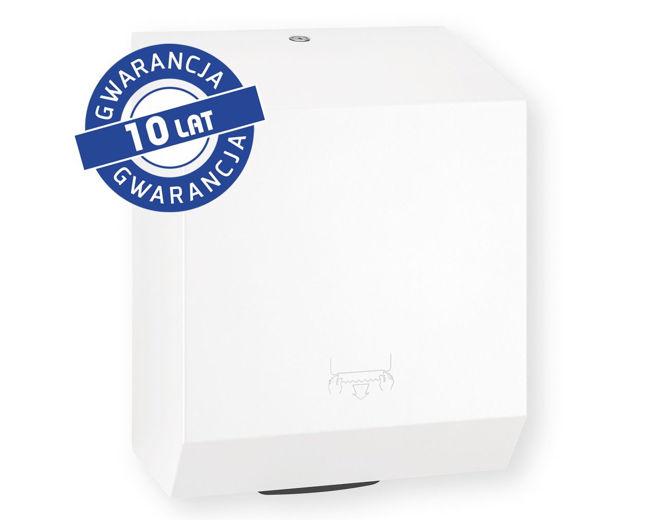 Mechaniczny podajnik ręczników papierowych zapewnia higieniczne użytkowanie, dotykany jest tylko pobierany ręcznik. Pobranie ręcznika uruchamia mechanizm odcinający listek o długości 25,5 cm. Urządzenie charakteryzuje się cichą i delikatną pracą mechanizmu odcinającego. W sytuacji awaryjnej ręcznik można wysunąć przez naciśnięcie dźwigni PUSH, znajdującej się w dolnej części podajnika. Uchwyt rolki wyposażony w system ułatwiający zakładanie ręcznika. Podajnik ma łatwy dostęp do mechanizmu tnącego umożliwiający bezproblemowe czyszczenie oraz konserwację urządzenia. Wykonany ze stali nierdzewnej. Obudowa pokryta specjalną strukturalną białą powłoką. Podajnik ręczników zabezpieczony jest trwałym stalowym zamkiem bębenkowym. Zamek zlicowany z powierzchnią urządzenia. Łączenia boków podajnika ręczników są spawane i szlifowane. Urządzenie posiada niewidoczne zawiasy. Zamykany na kluczyk.