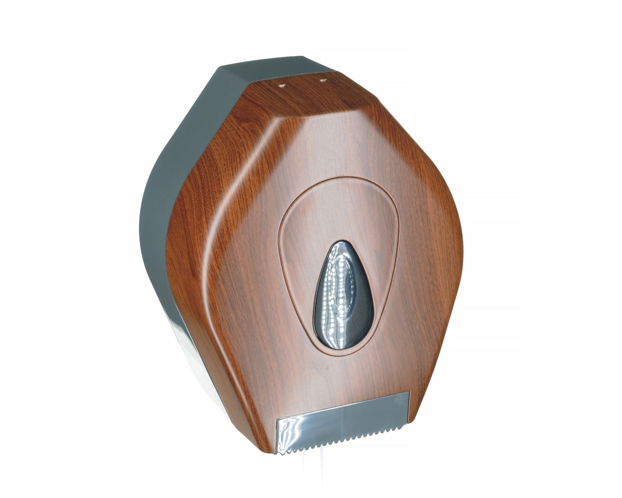 Pojemnik wykonany z wysokiej jakości tworzywa ABS. Odporny na działanie UV. Posiada ozdobne okienko w kolorze szarym, które umożliwia kontrolę ilości papieru w pojemniku. Można w nim stosować papier o maksymalnej średnicy roli 19 cm. Pojemnik zamykany na kluczyk.