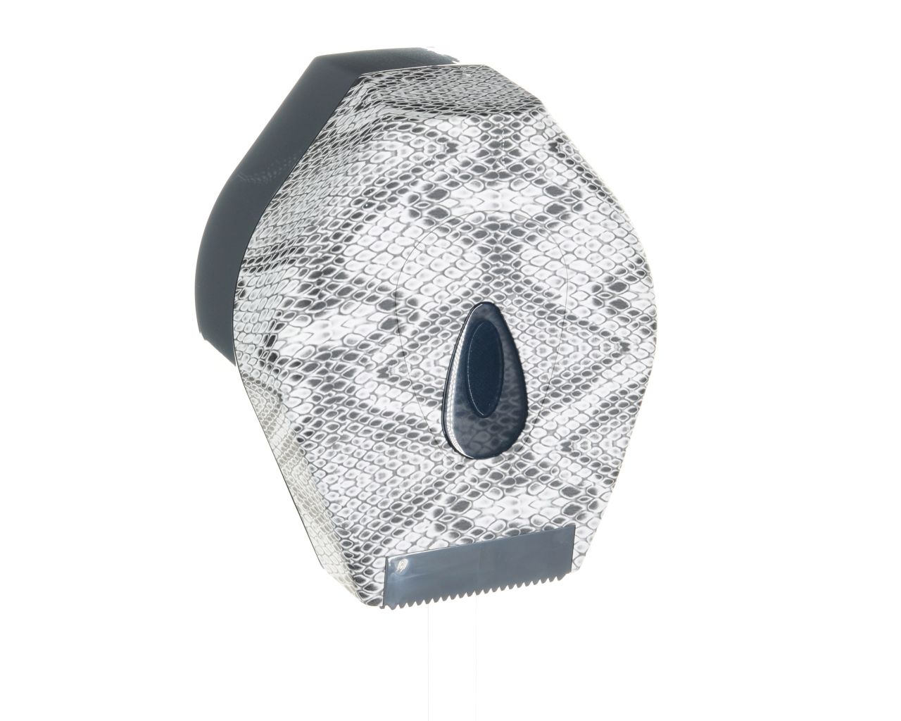 Pojemnik wykonany z wysokiej jakości tworzywa ABS. Odporny na działanie UV. Posiada ozdobne okienko w kolorze szarym, które umożliwia kontrolę ilości papieru w pojemniku. Można w nim stosować papier o maksymalnej średnicy roli 19 cm. Pojemnik zamykany na kluczyk.
