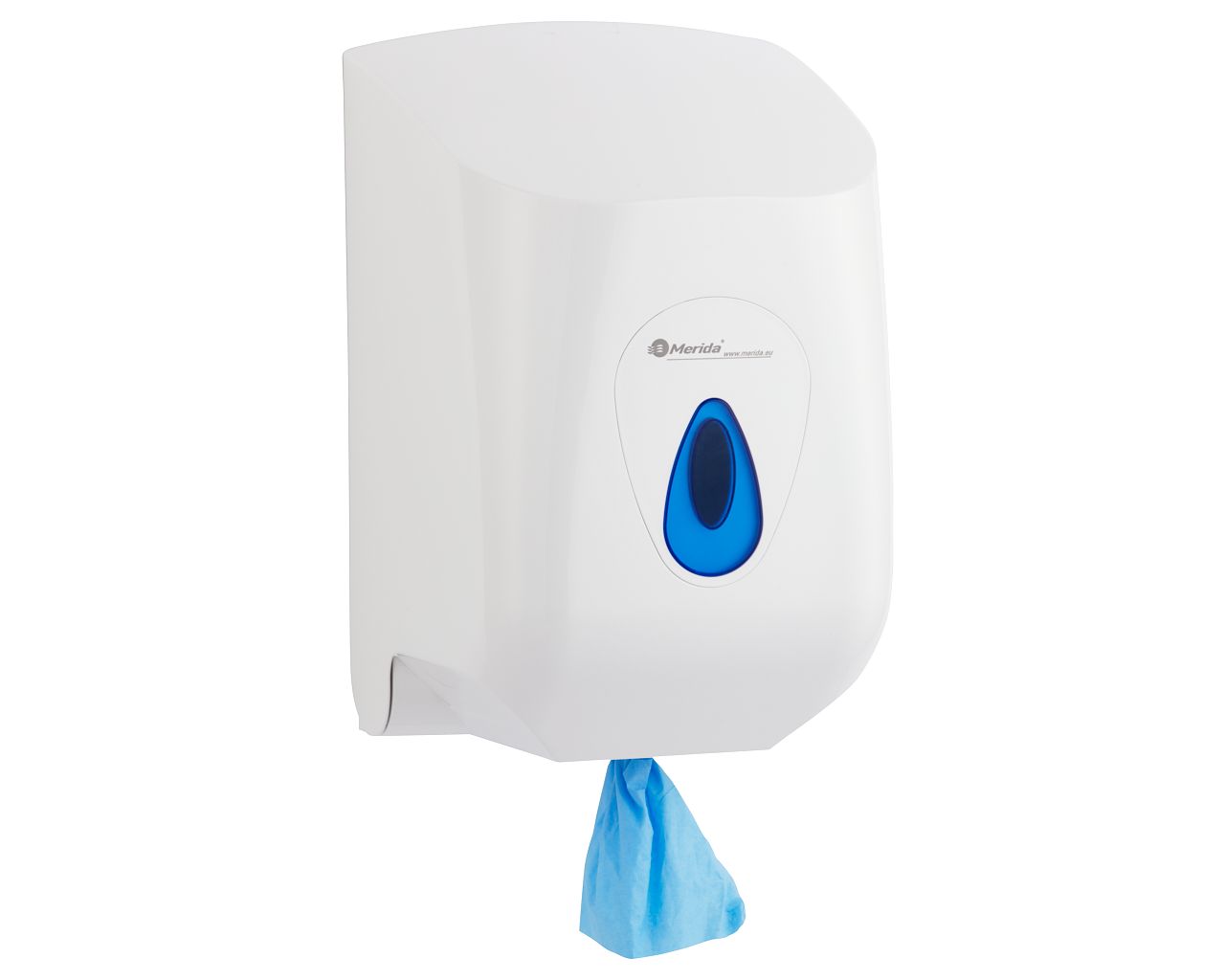 Pojemnik na ręczniki papierowe w rolach MERIDA TOP MAXItworzywo ABS, białyokienko niebieskie