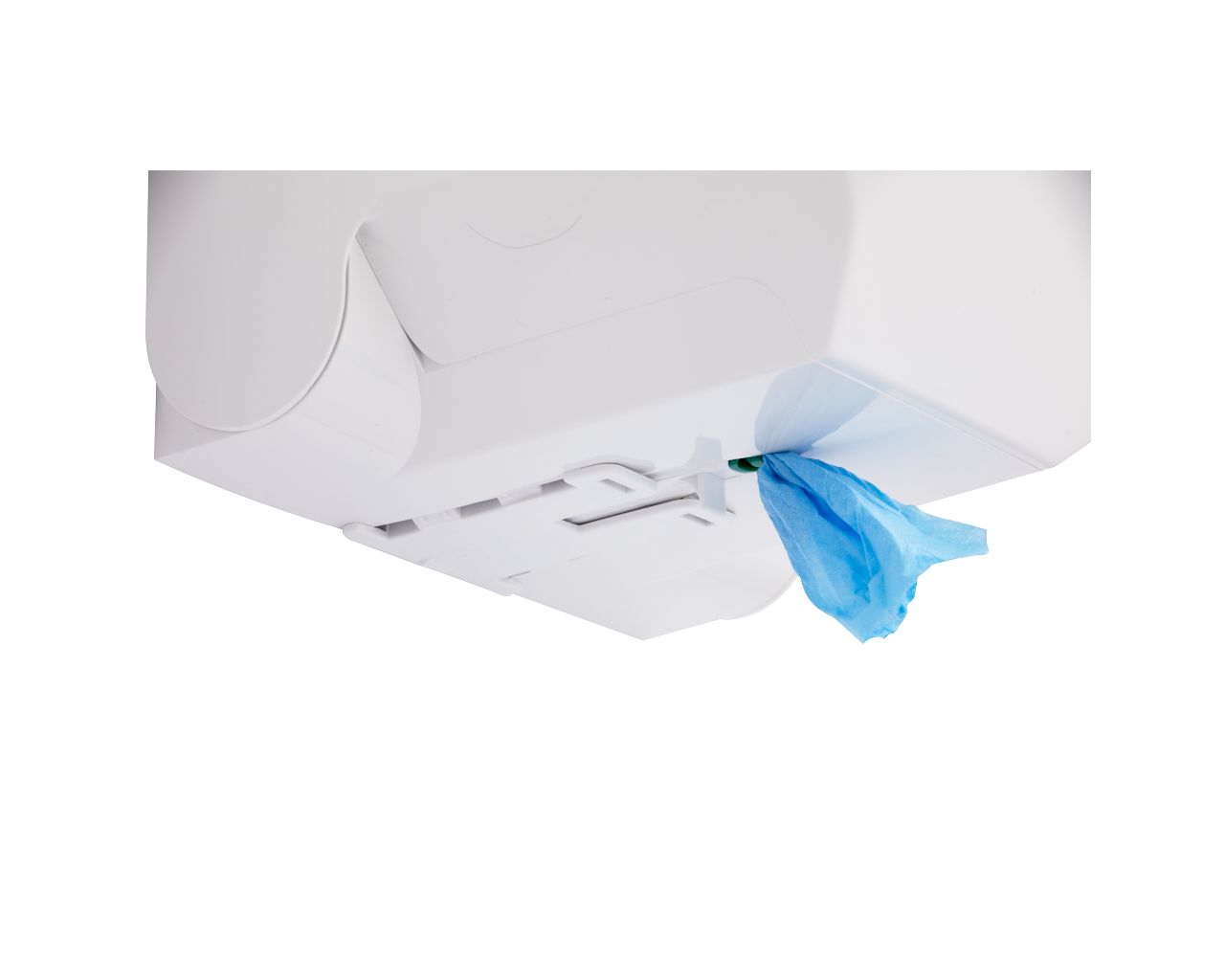– umieszczony w podstawie pojemnika reduktor nie pozwala na samoistne wypadanie papieru, jednak papier w otworze (wyciągany ze środka roli) jest łatwo dostępny