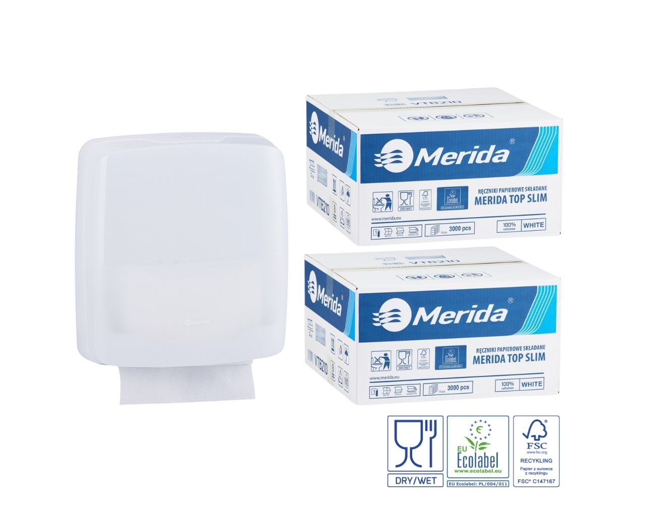 Zestaw promocyjny: Merida Harmony SLIM biały + 2 kartony ręczników Top SLIM Ecolabel
