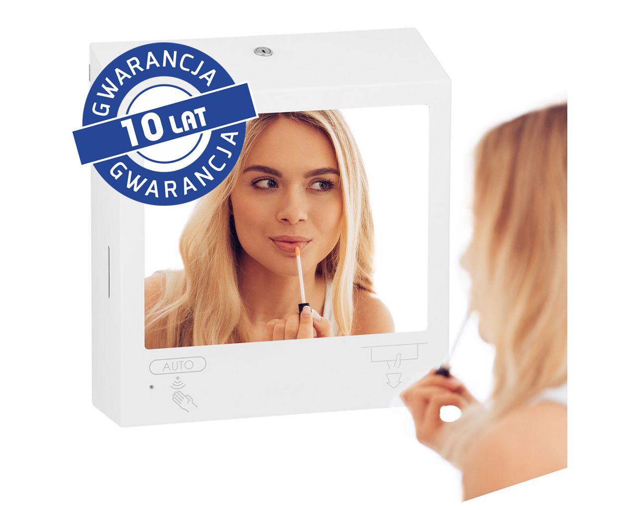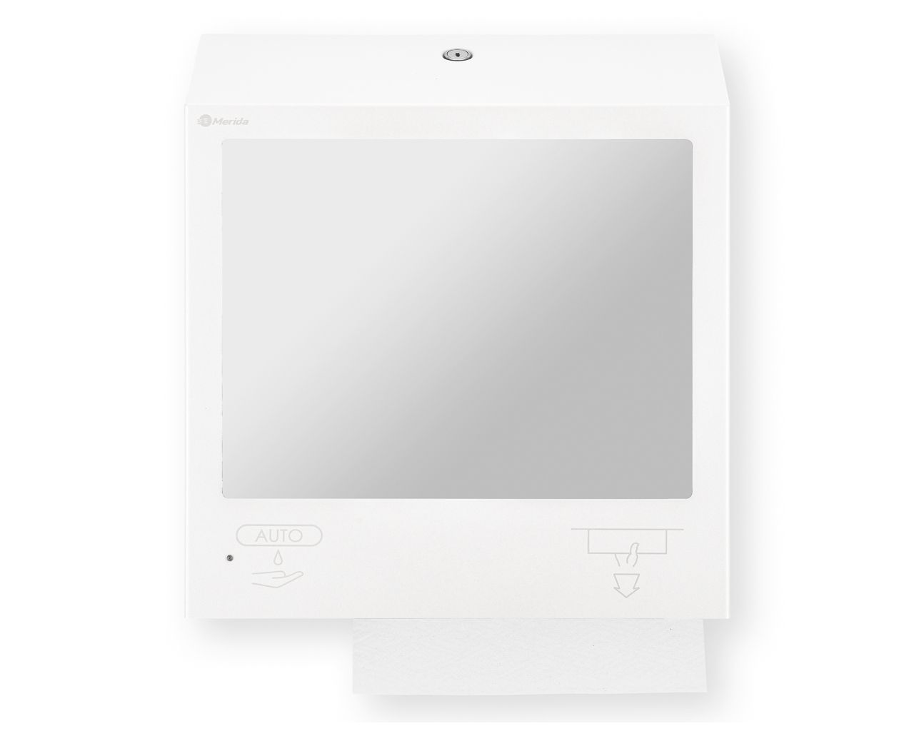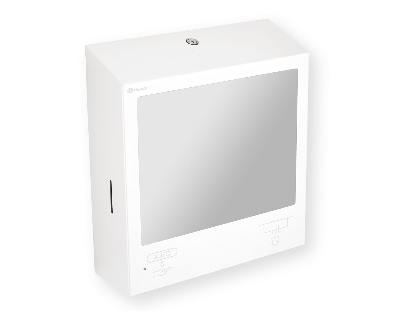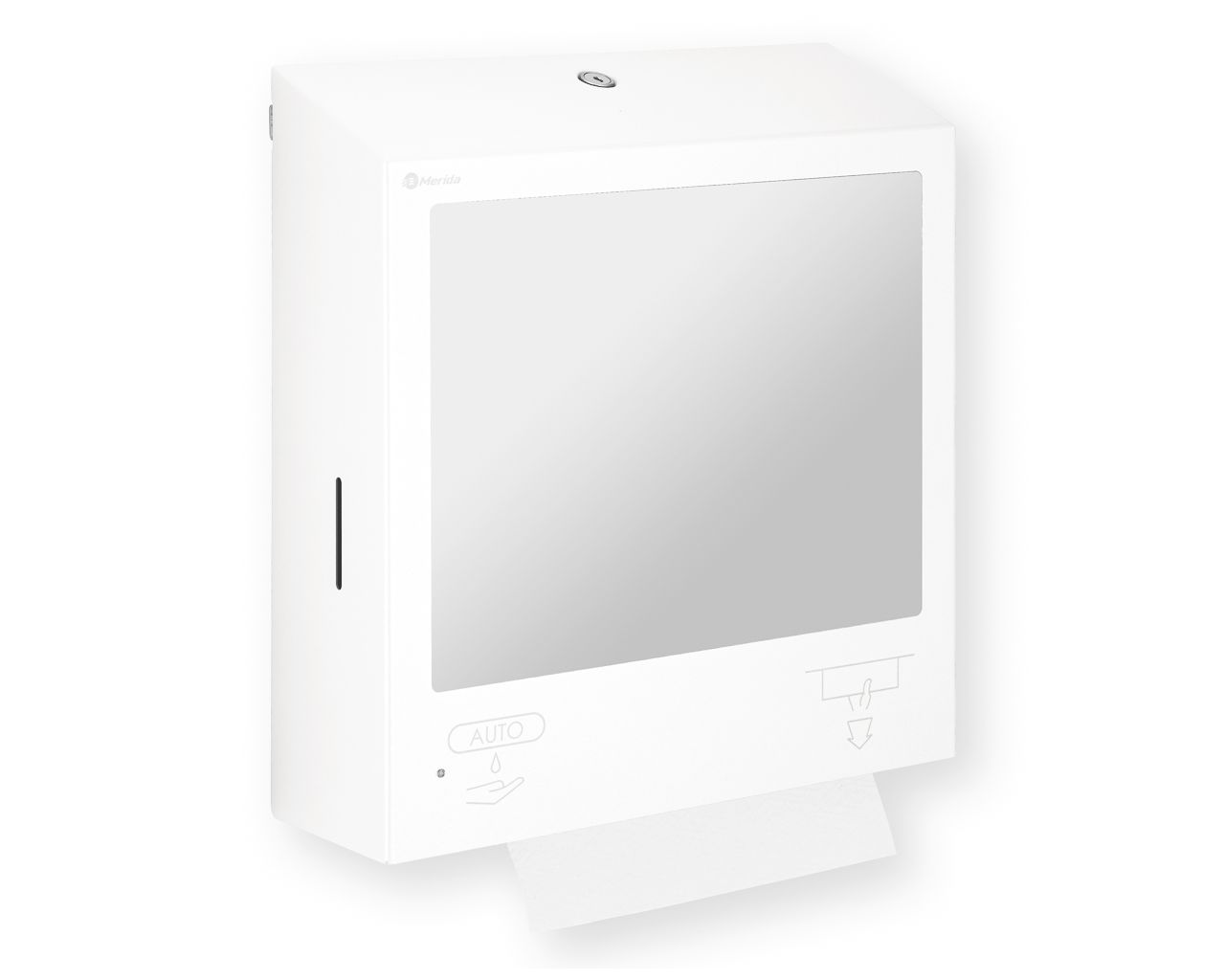 Pojemnik na ręczniki składane z bezdotykowym automatycznym dozownikiem mydła w pianie i z lustrem ze stali SuperMirror „3 w 1″ MERIDA STELLA SLIM WHITE LINE COMBObiały