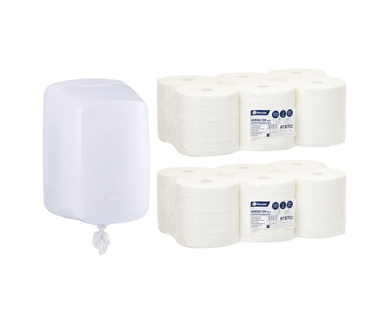 Pojemnik na ręczniki w roli MERIDA HARMONY za 50 zł netto przy zakupie 2 opakowań ręczników w roli MERIDA OPTIMUM MAXI ROB105 (12 x 150 m = 1 500 m)