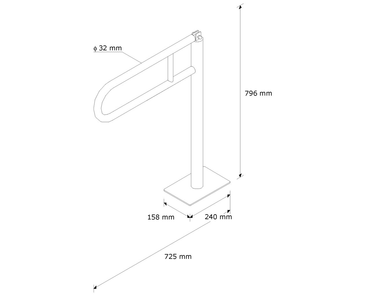 Poręcz uchylna łukowa 600 mmmontowana do podłogi