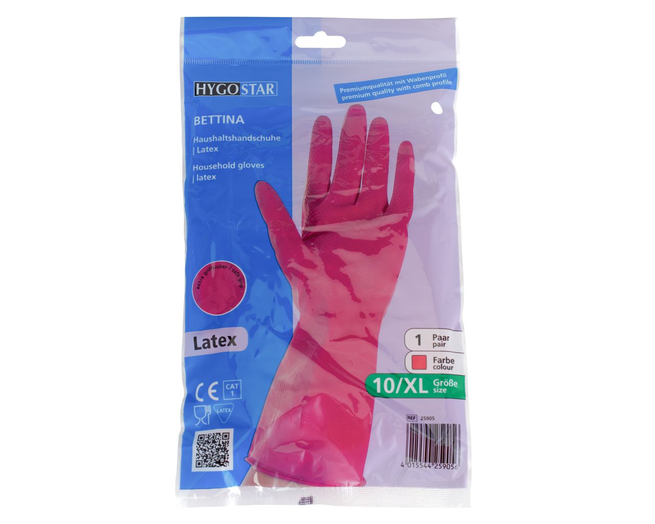 Bardzo wygodne, o podwyższonej trwałości i wytrzymałości, do profesjonalnych zastosowań. Wykonane z lateksu z wewnętrzną wyściółką z bawełny – malinowe. Zastosowany wzór na palcach i części chwytnej (extra grip) zwiększa przyczepność podczas pracy. Rękawice chronią przed otarciami naskórka oraz wpływem środków chemicznych. Do wielokrotnego stosowania – solidne i wytrzymałe. Pakowane po jednej parze.