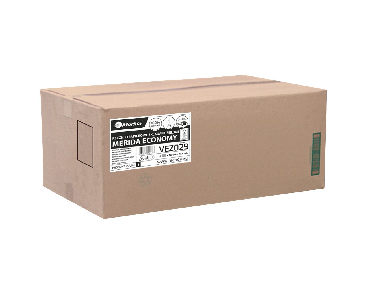 Ręczniki papierowe składane w VMERIDA ECONOMY, jednowarstwowe, zielonekarton 4000 szt.