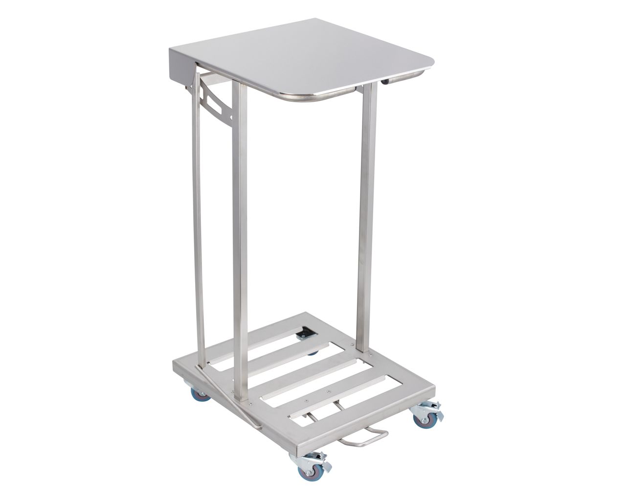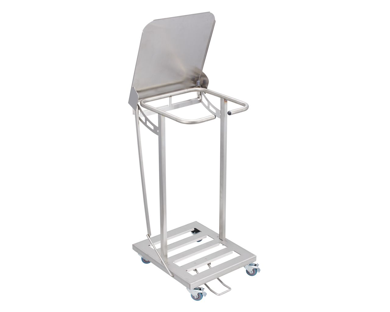 Stelaż na workiz wolno opadającą pokrywą i przyciskiem pedałowym, na kółkachstal matowa
