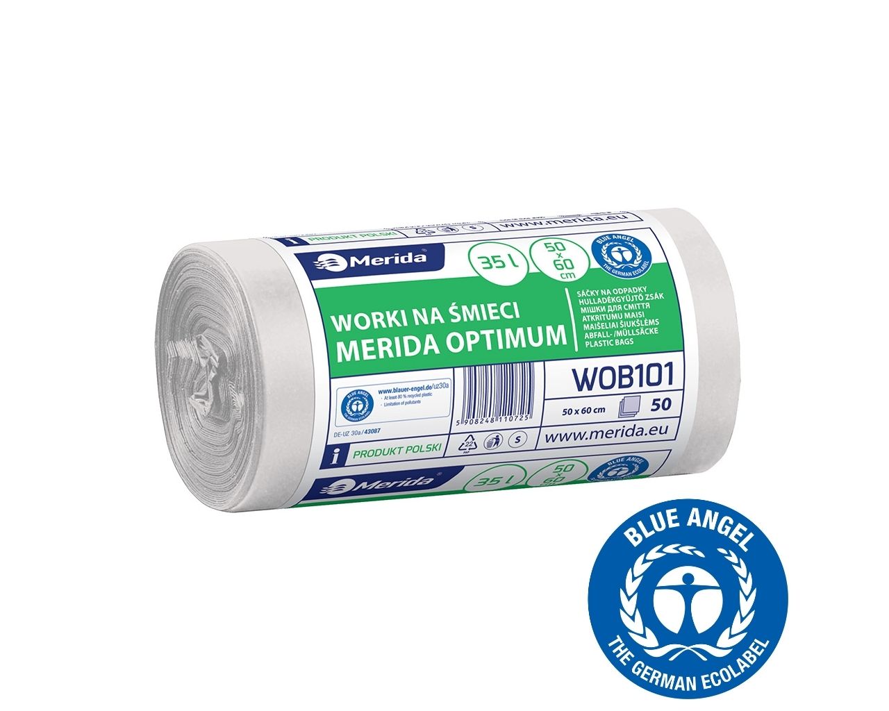 Worki na śmieci 35 lMERIDA OPTIMUM BLUE ANGEL, białe, 50×60 cmrolka 50 szt.