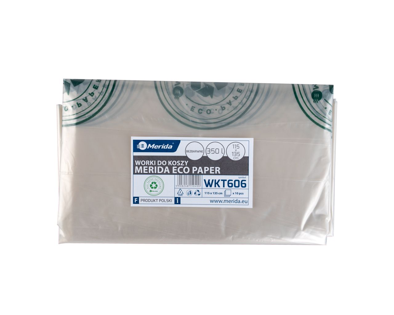 Worki na zużyte ręczniki papierowe 350 lMERIDA ECO PAPER, bezbarwne, 115×135 cmpaczka 10 szt.