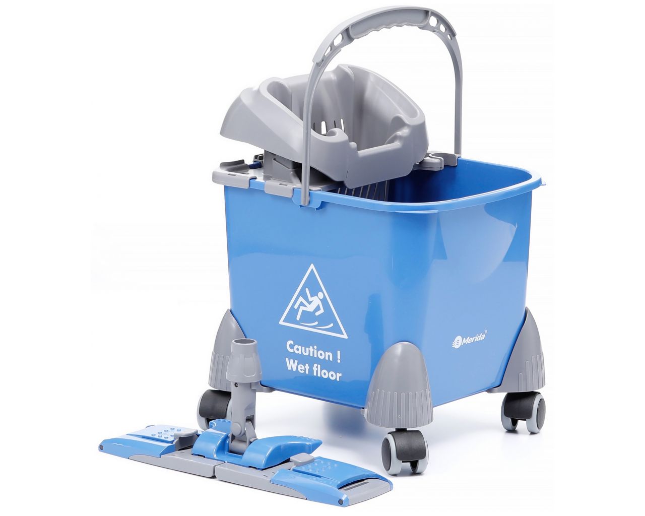 Wózek z wiadrem o pojemności 20 litrów. W zestawie posiada wyciskarkę do mopów. Wózek wyposażony jest w samoskrętne kółka, ułatwiające pracę. Dodatkowo w zestawie znajduje się stelaż do mopów o długości 40 cm. Wózek doskonale sprawdza się w myciu niewielkich powierzchni.