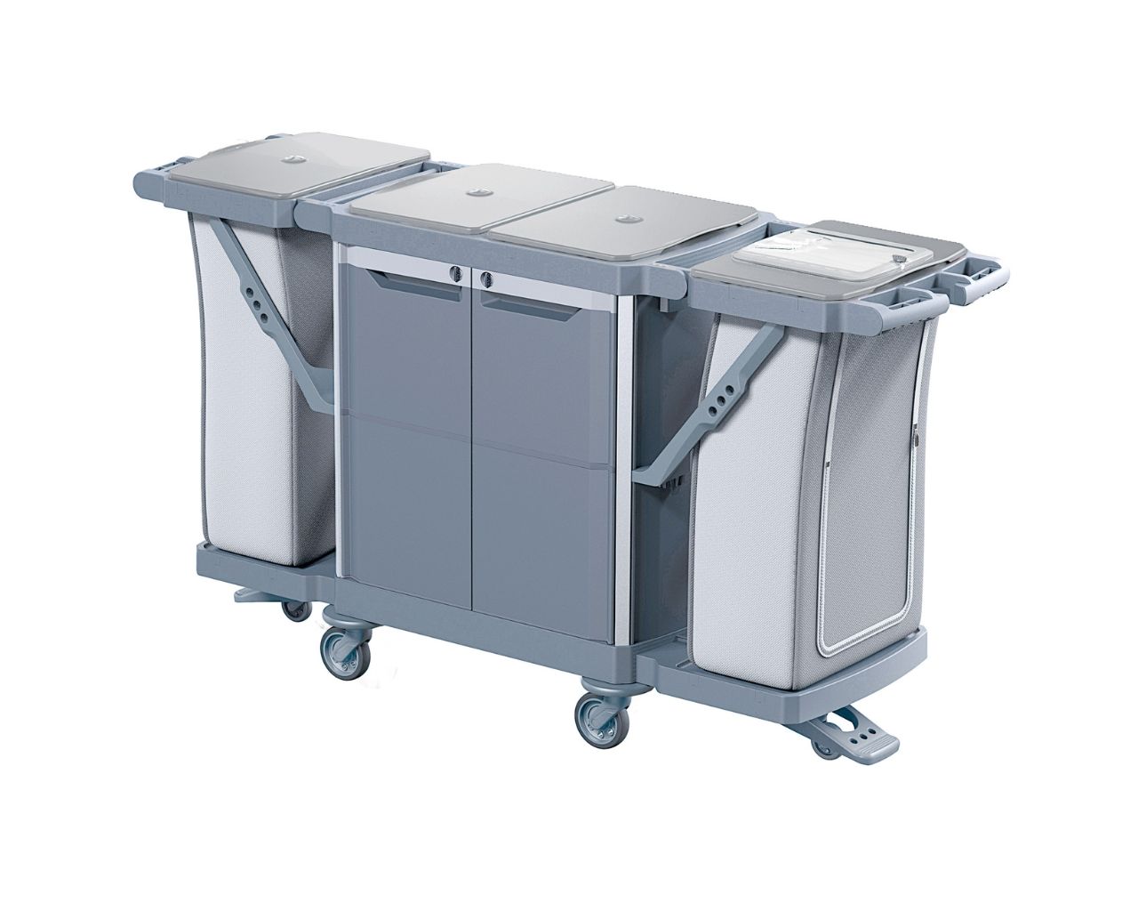 Wózek serwisowy do sprzątaniaMERIDA OPERA, 2 x półki wewnętrzne2 x uchwyt na worek 120 l z pokrywą